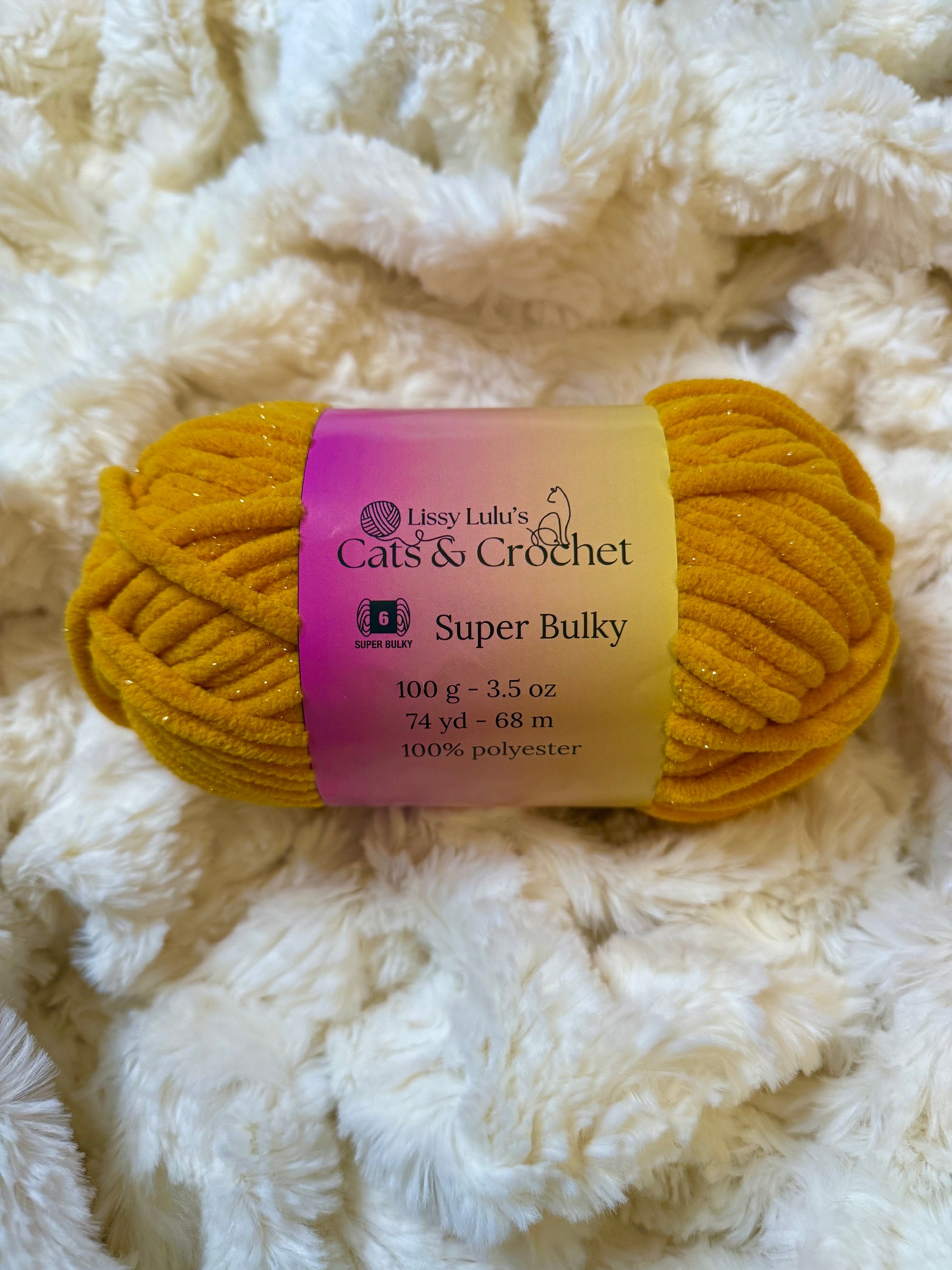 Experience the perfect pop of color with our Amber #6 Super Bulky 100 g skeins of Polyester Chenille Yarn. Add a touch of luxury and texture to your next design with its soft and sparkly finish. Perfect for creating eye-catching plushies!