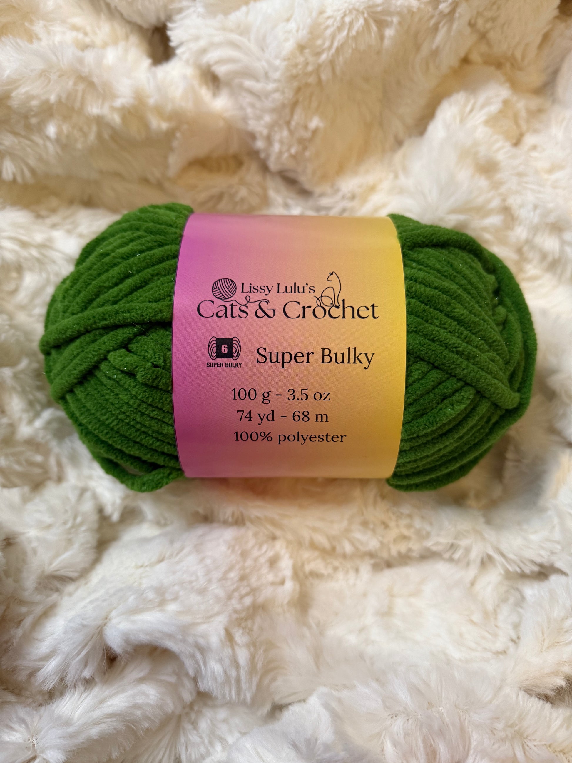 Experience the perfect pop of color with our Grass #6 Super Bulky 100 g skeins of Polyester Chenille Yarn. Add a touch of luxury and texture to your next design with its soft and sparkly finish. Perfect for creating eye-catching plushies!