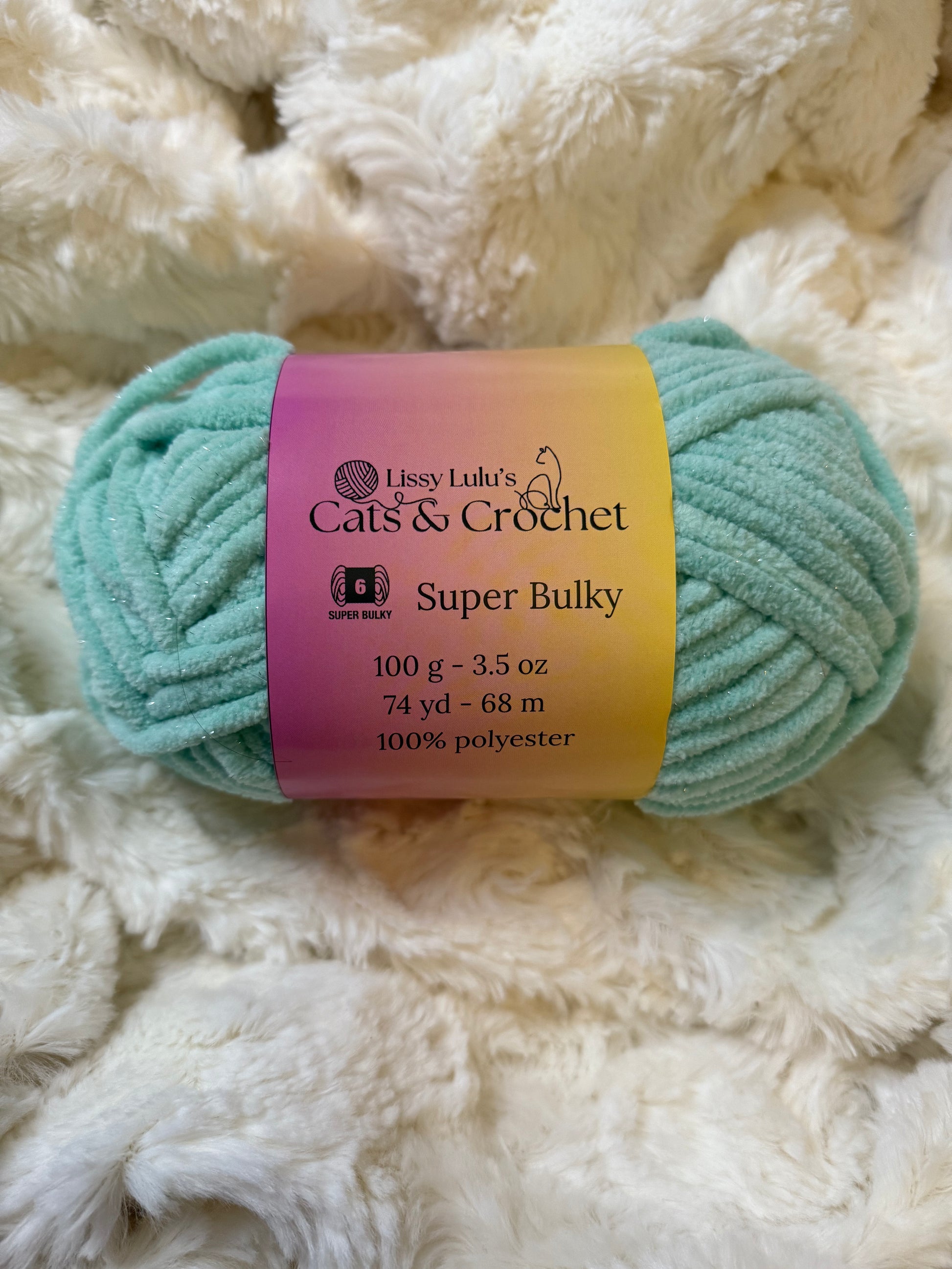Experience the perfect pop of color with our Seafoam #6 Super Bulky 100 g skeins of Polyester Chenille Yarn. Add a touch of luxury and texture to your next design with its soft and sparkly finish. Perfect for creating eye-catching plushies!