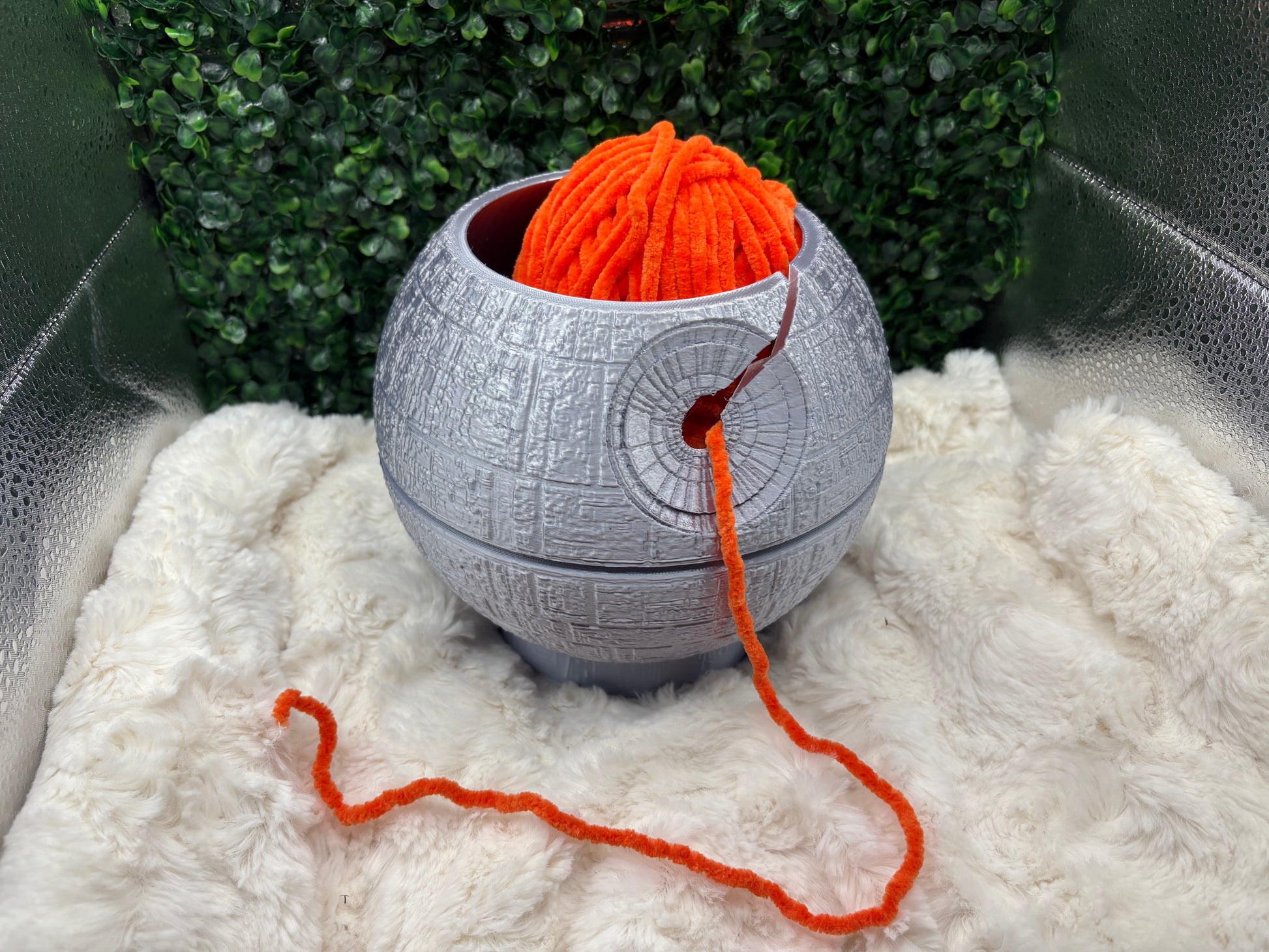 This yarn bowl is perfect for any Star Wars fan, featuring a Death Star design for a unique touch. Keep your yarn in place and organized while you work on your latest project. Made with quality materials, this yarn bowl is a must-have for any yarn enthusiast.
